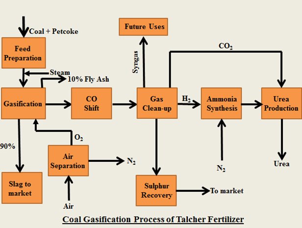 Talcher Fertilizers Ltd. (TFL) is using Coal Gasification for production of Ammonia/Urea. Pollutants like Carbon Dioxide is recycled for production of Urea and other by – products like Sulphur are recovered and are marketed. Further, ash is converted to inert slag which is essentially non – hazardous.